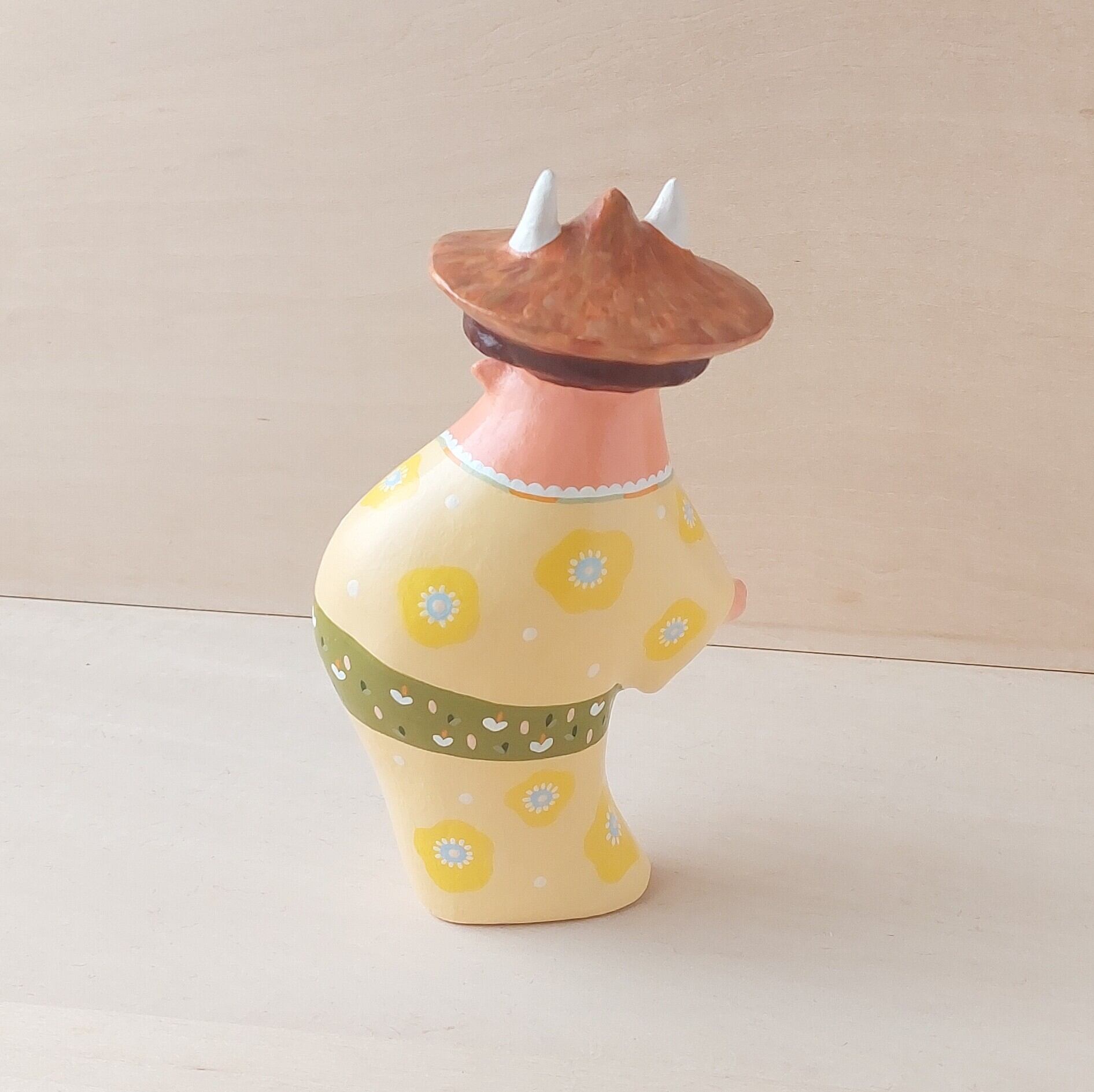 置く場所の材質によっては、ずっと同じところに置いたままにしておくと作品の底がくっついたりする場合があります。たまに動かすか、布や紙の上に置いて飾ってください。