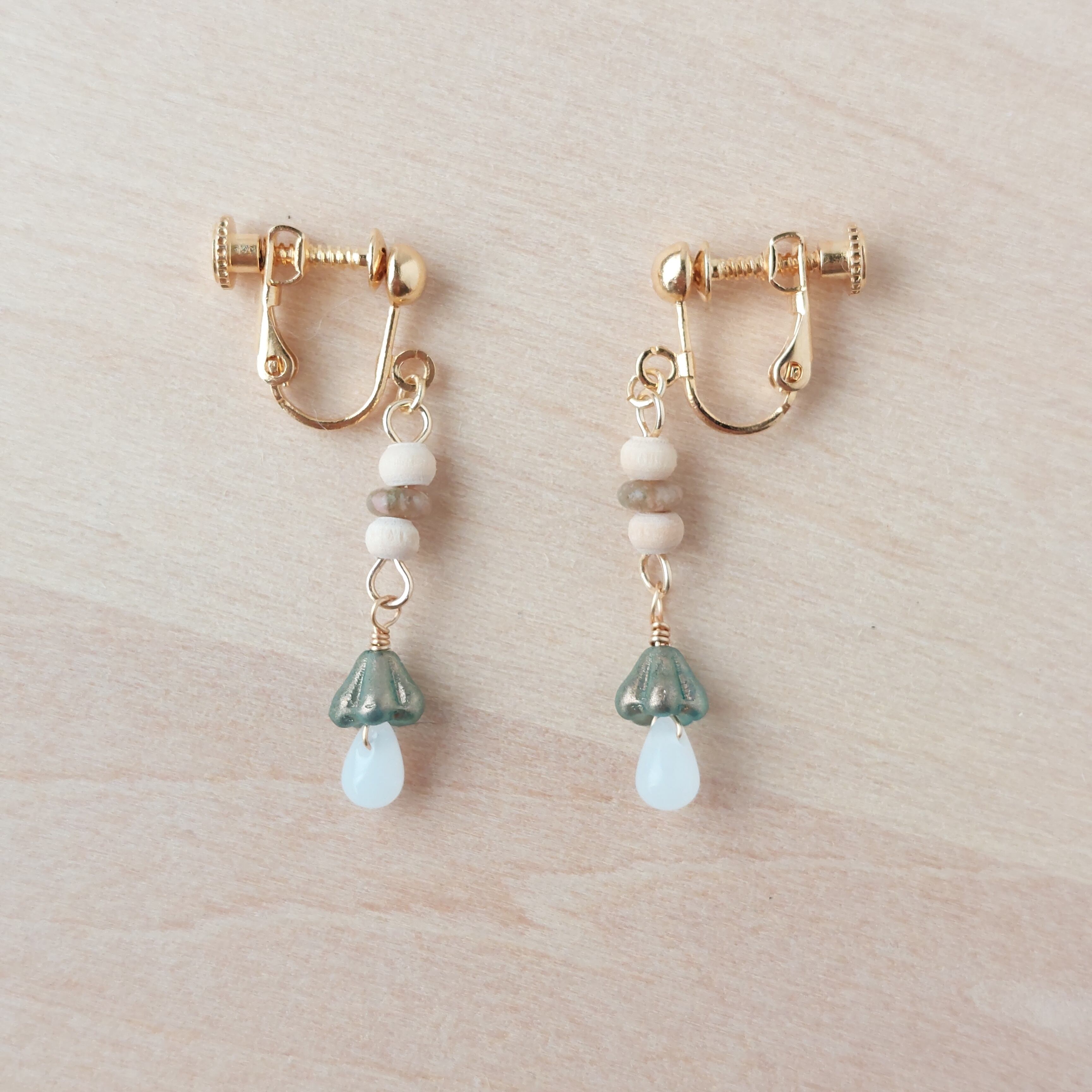 小さなキノコをモチーフにしたイヤリングです。