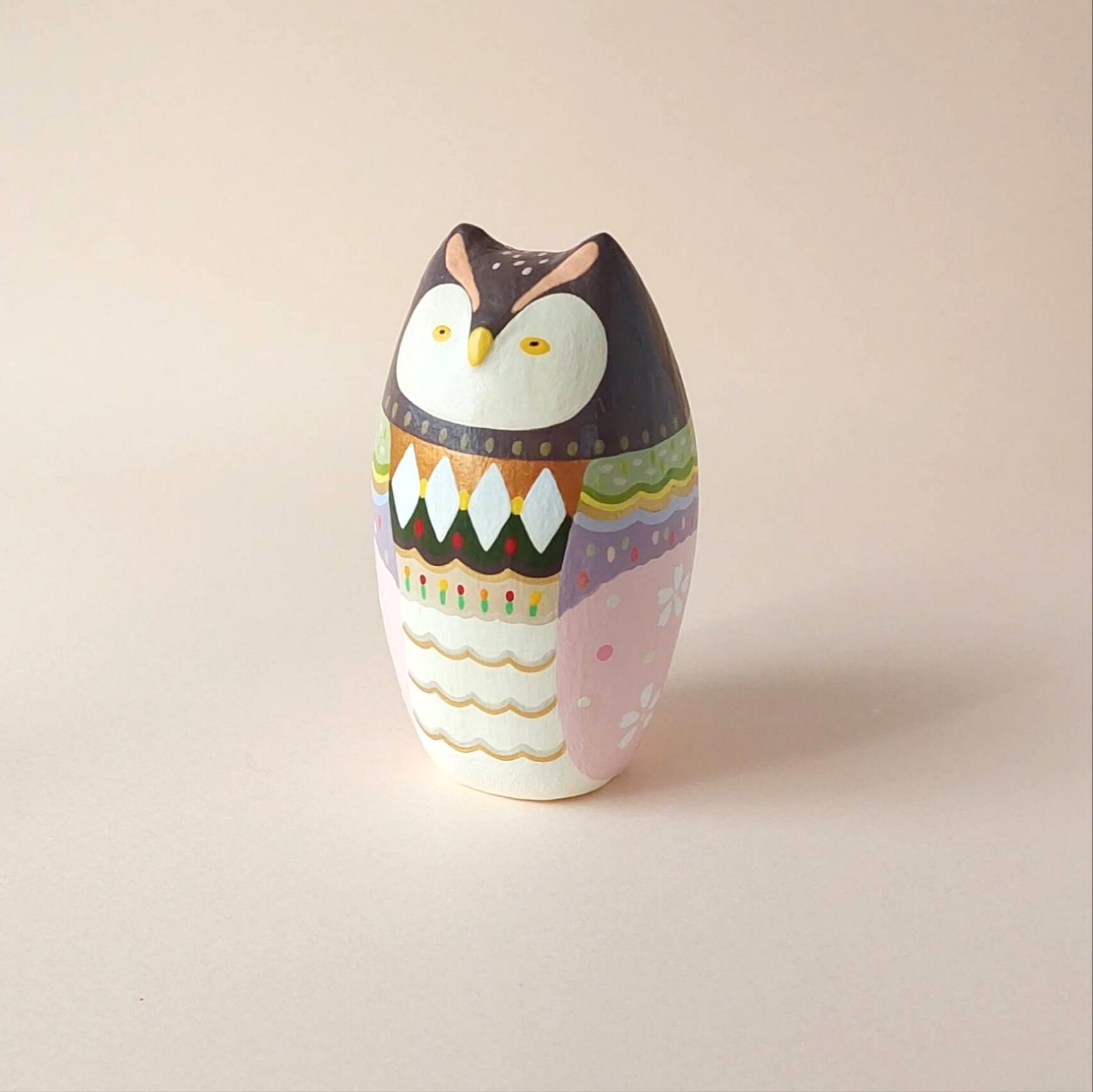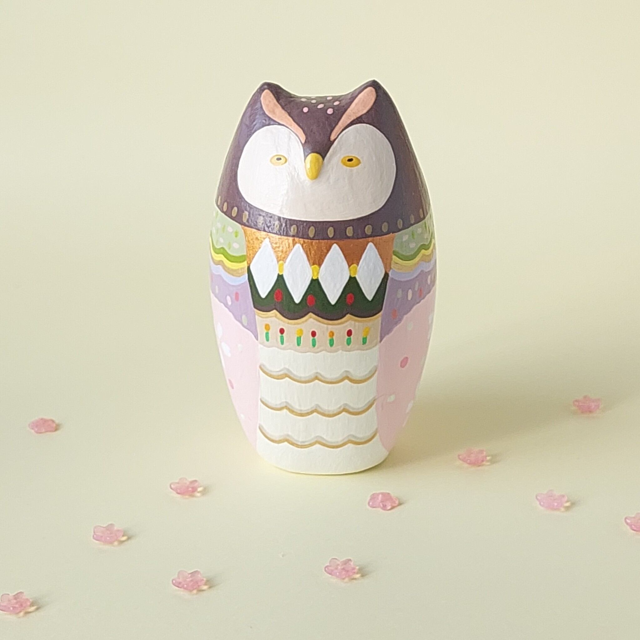 コノハズクをモチーフにした春の朗らかな雰囲気が似合う作品です。背中には満開の桜、前にはチューリップをイメージした絵が描かれており、部屋に置くだけでちょっとしたお花見気分が味わえます。