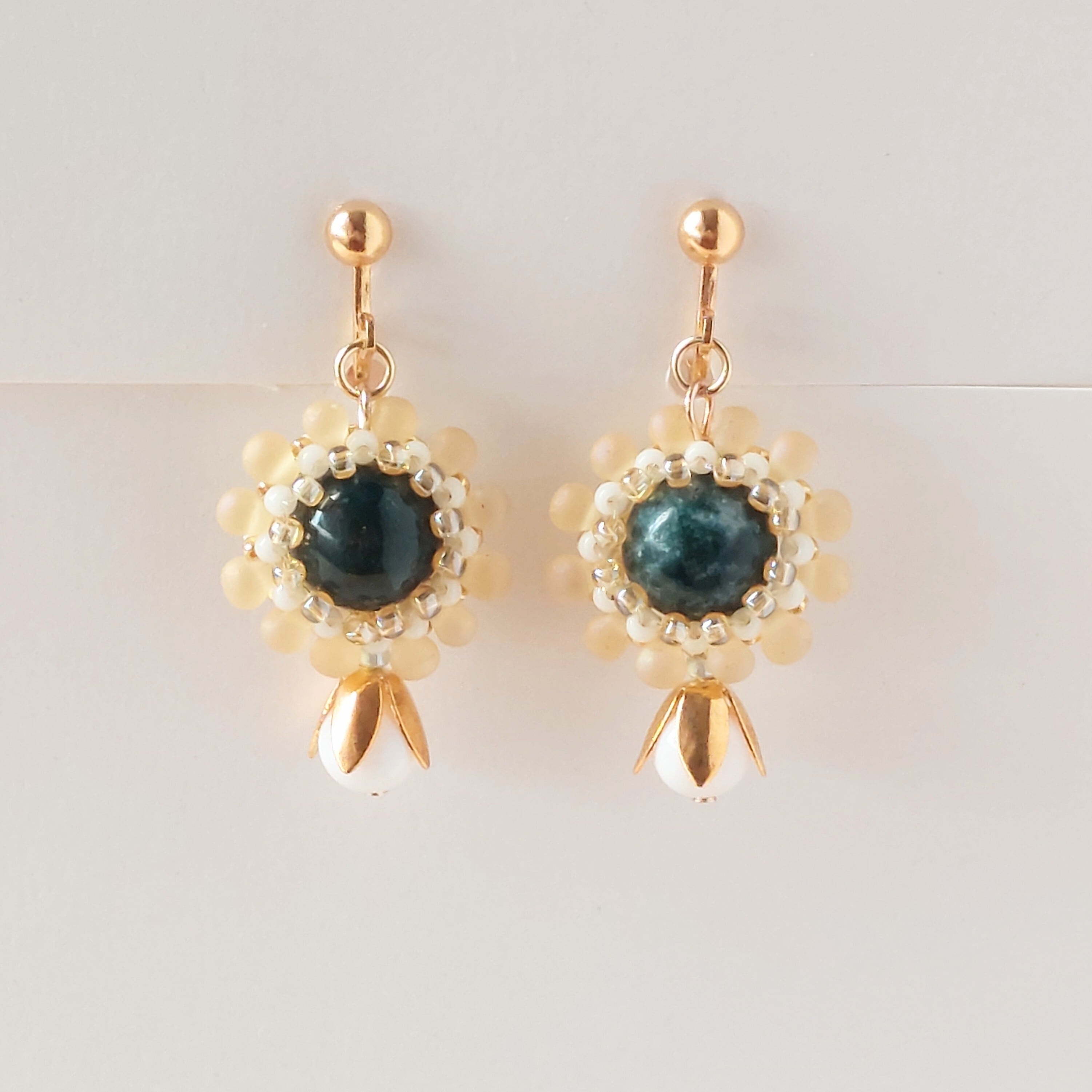 花瓶にいけられた花をモチーフにしたイヤリングです。
