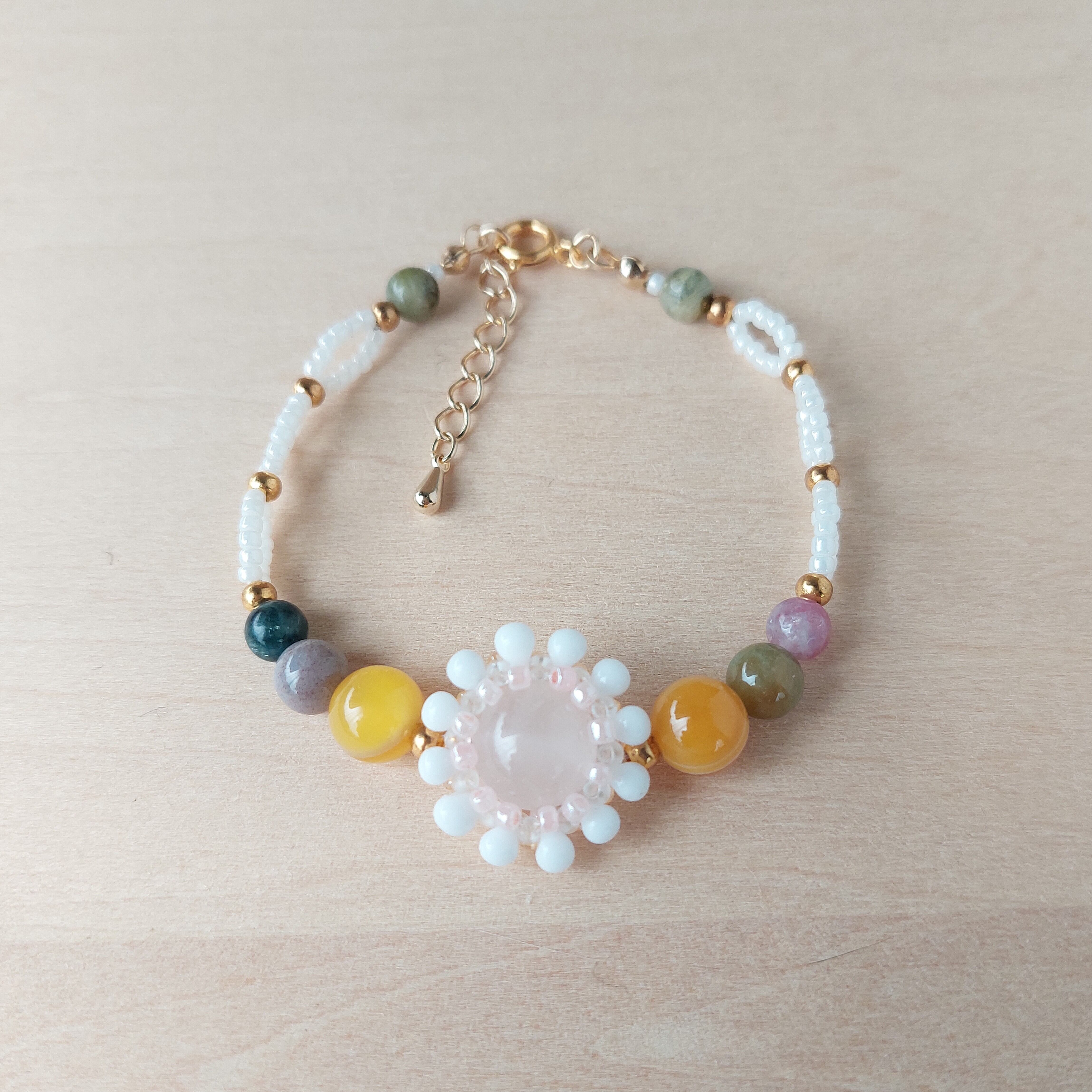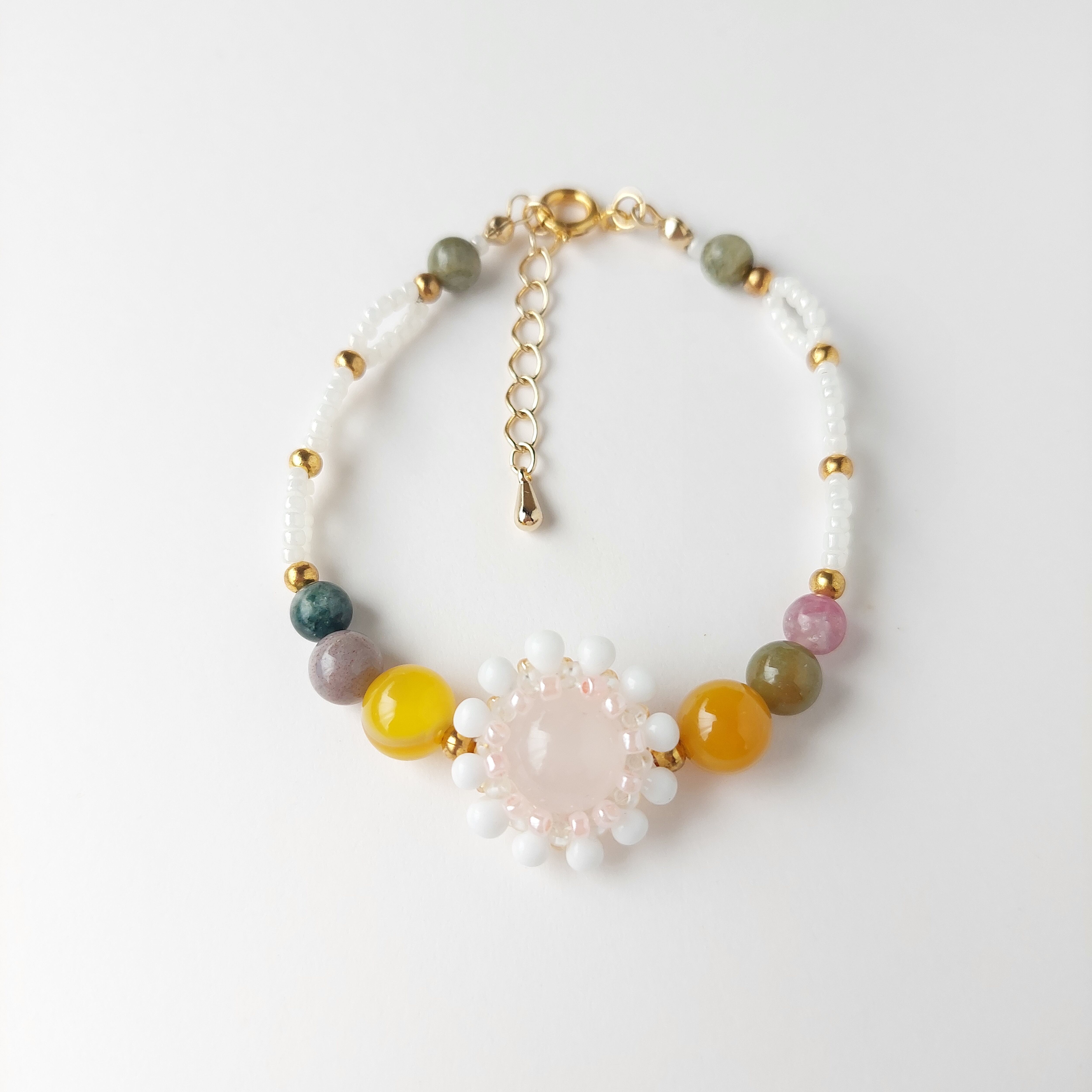 瑪瑙、ローズクォーツ、トルマリンなどの天然石を使用しています。