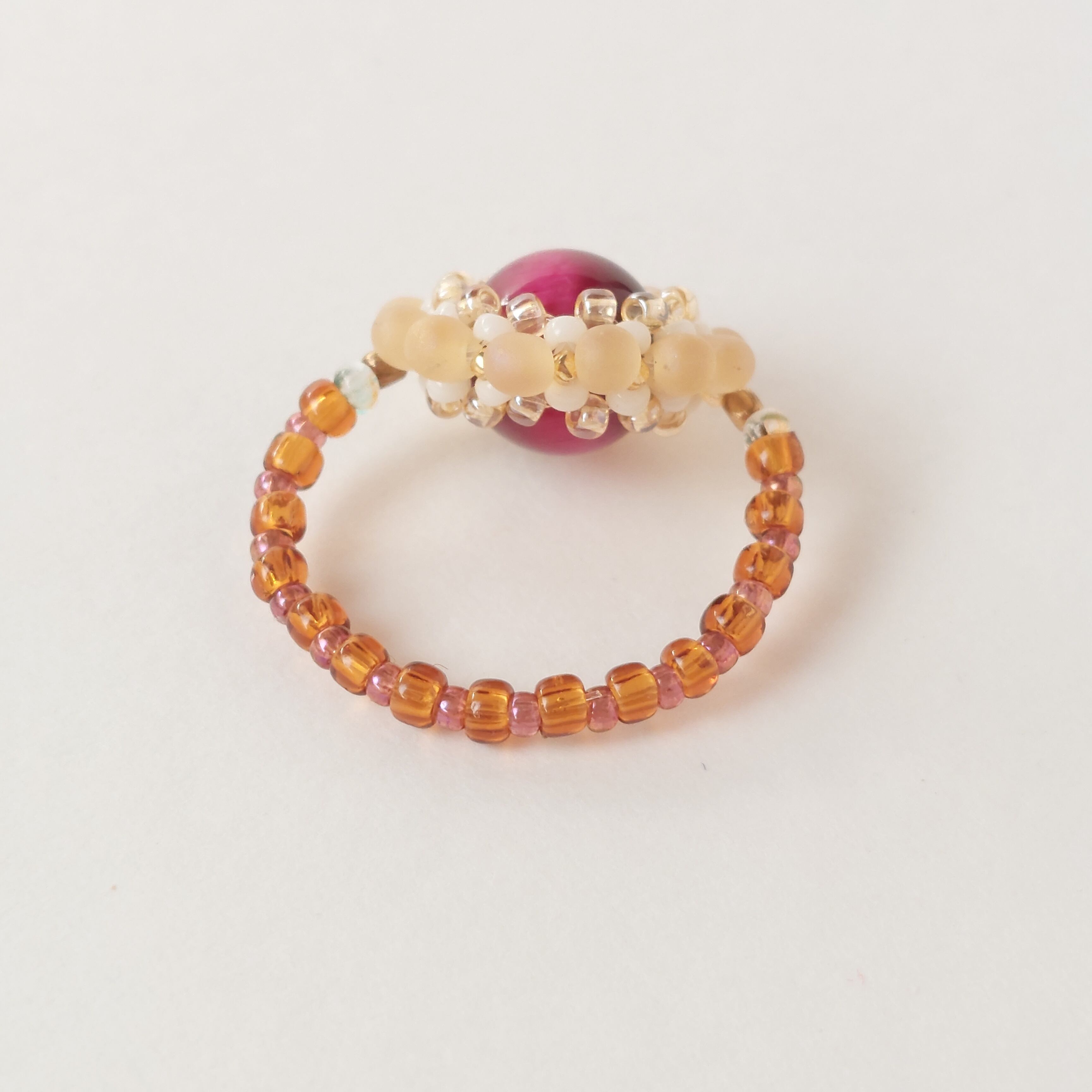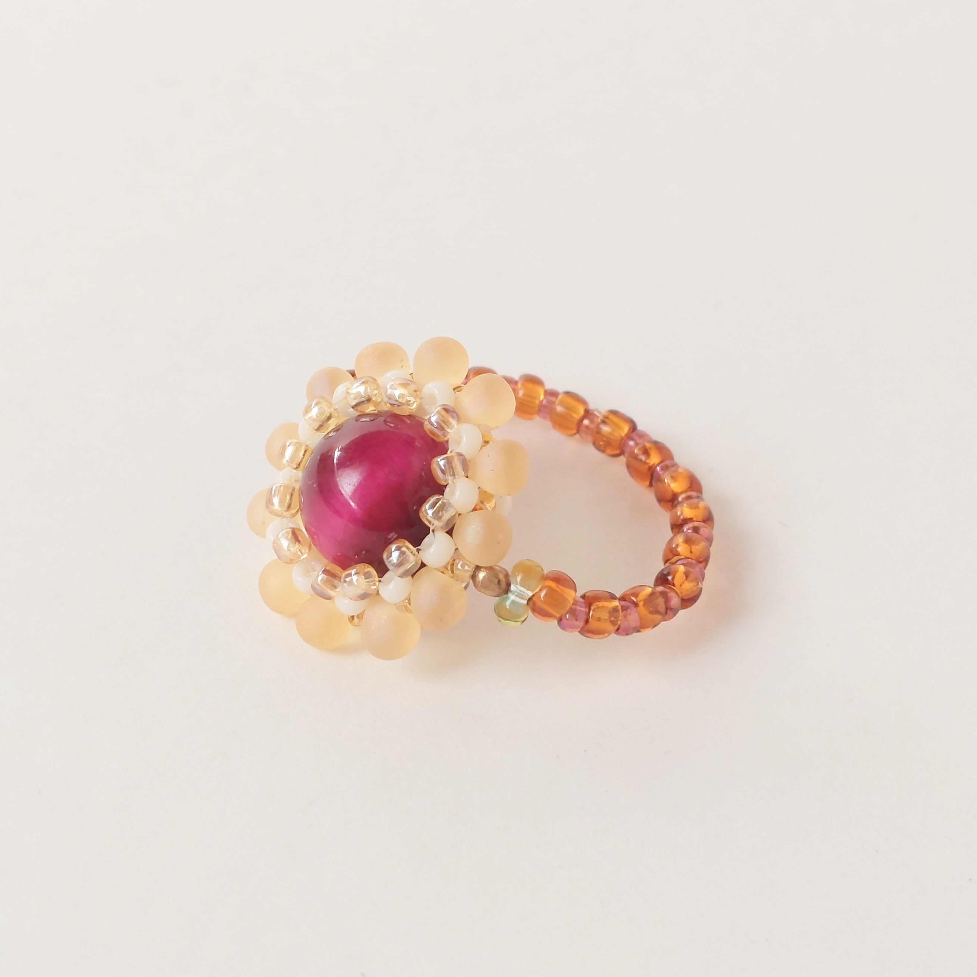 ビーズで編んだお花の指輪。