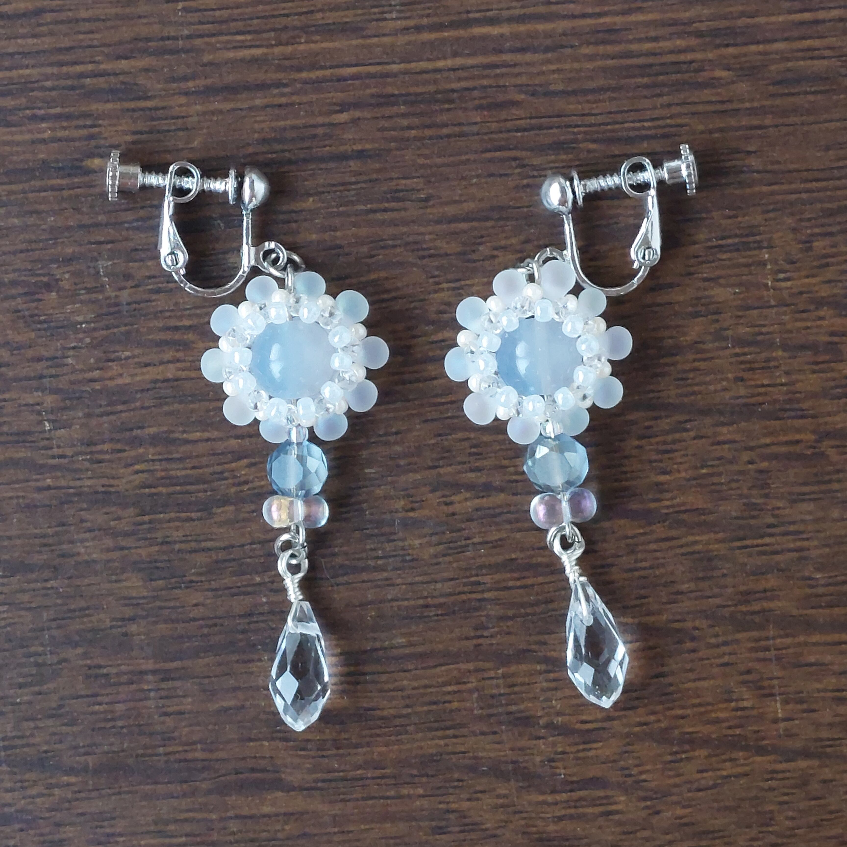 霜が降りるお花のイヤリング