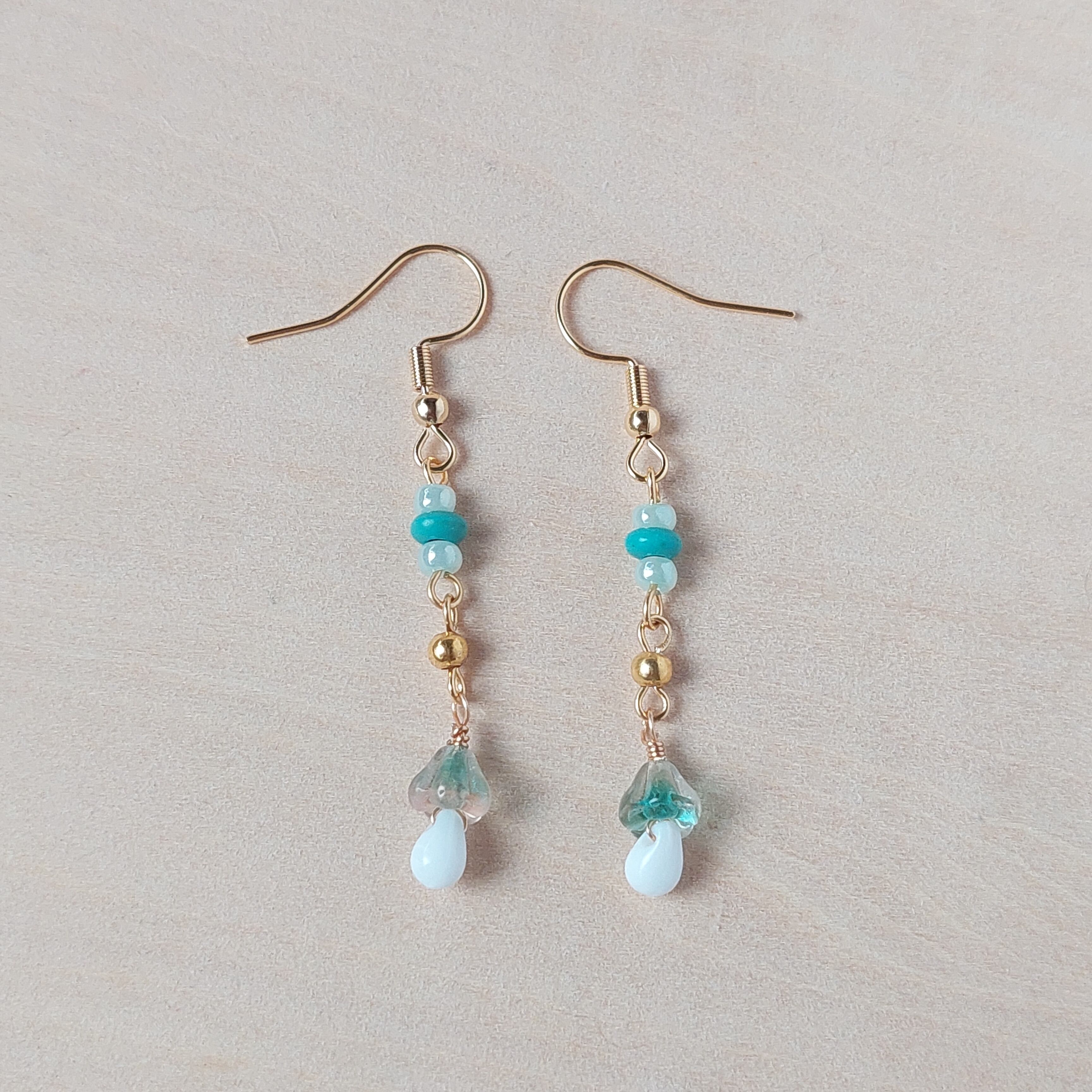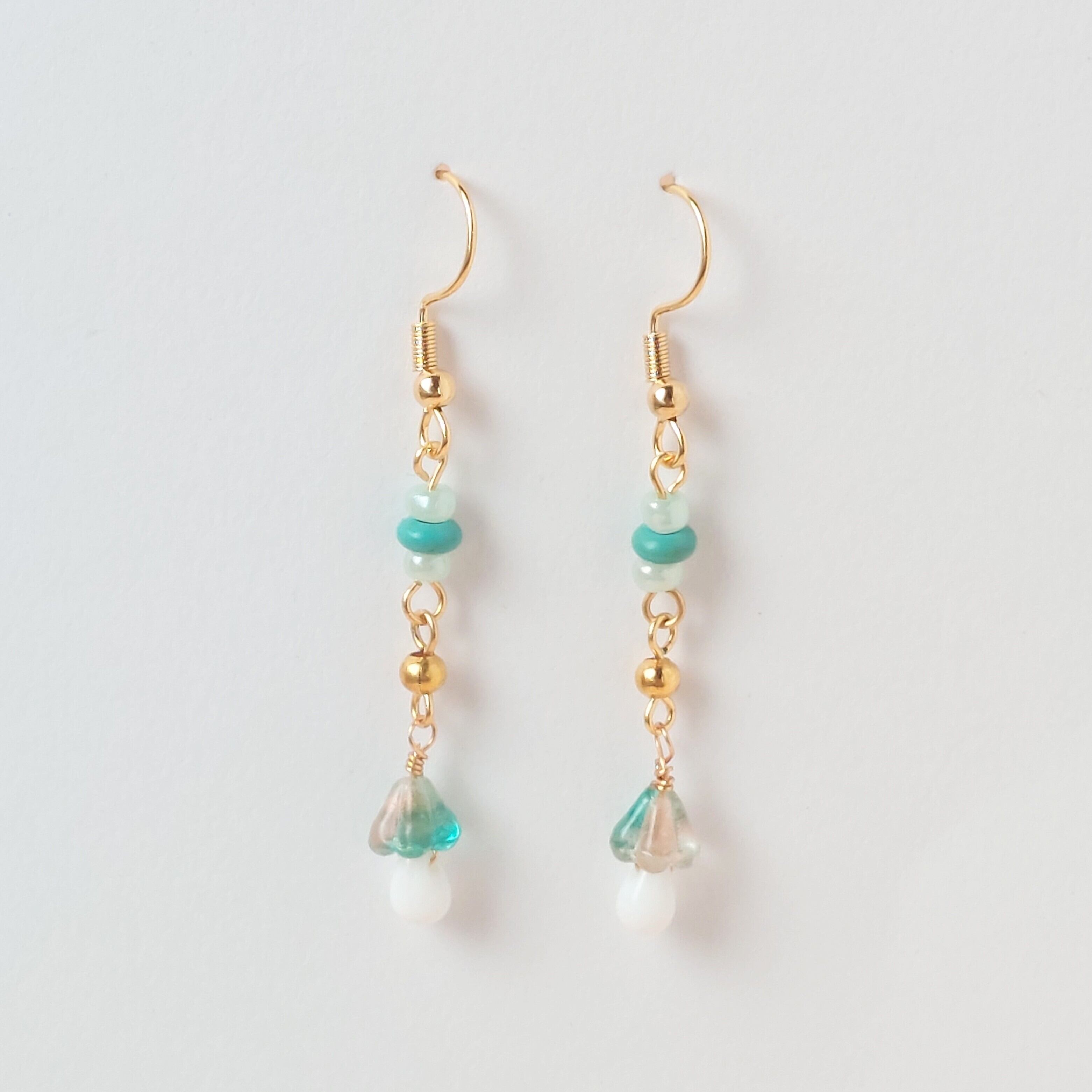 小さなキノコのピアス(ターコイズ)